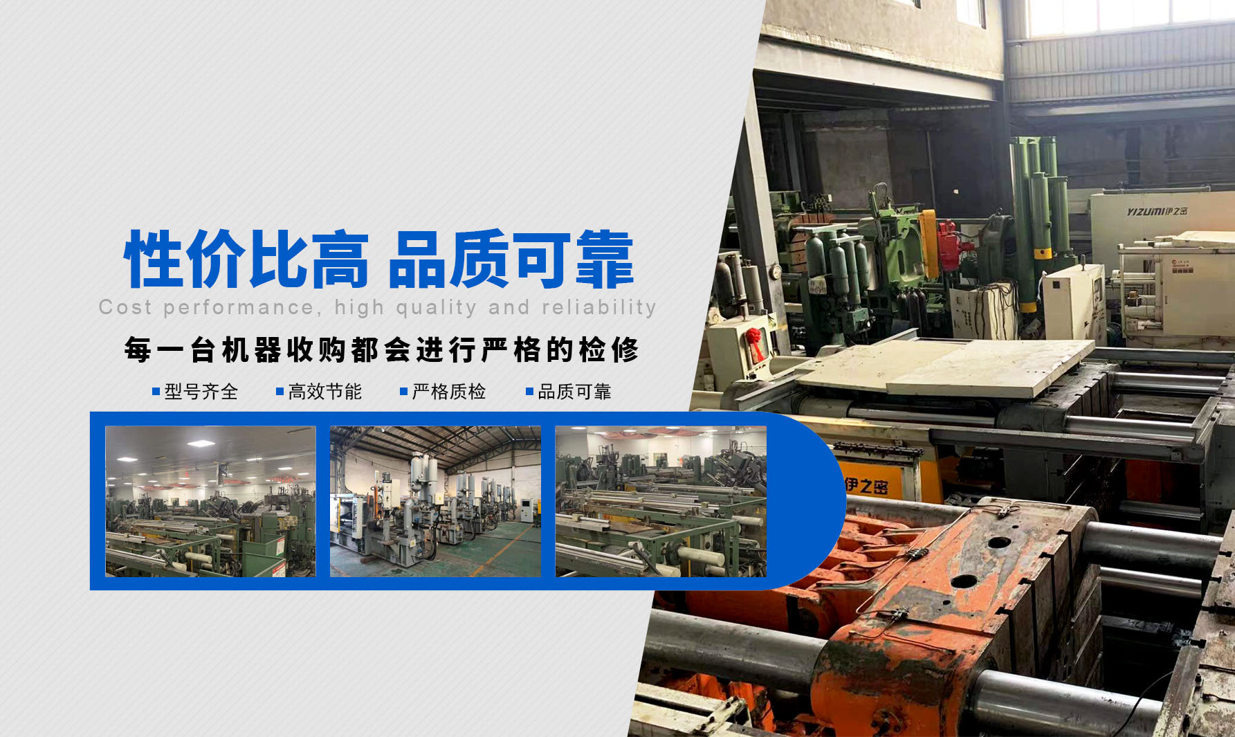 ? ? ? ?臺州久冠機(jī)械科技有限公司位于浙江省臺州市路橋區(qū)峰江鎮(zhèn)峰江路一號 ,專業(yè)從事二手壓鑄機(jī)及周邊設(shè)備業(yè)務(wù),專營國內(nèi)知名品牌,如香港力勁,廣東伊之密,無錫新佳盛,常州力卓等優(yōu)質(zhì)二手壓鑄機(jī),為國內(nèi)外鑄造產(chǎn)業(yè)鏈用戶提供優(yōu)質(zhì)可靠的二手壓鑄機(jī)。公司發(fā)展與壯大二十年來,我們一直秉承團(tuán)結(jié)協(xié)作,互惠互利,誠實守信,質(zhì)優(yōu)價廉的原則和理念持續(xù)為客戶提供優(yōu)質(zhì)貨源,自公司成立以來,有在線專家服務(wù),并參加國內(nèi)外壓鑄機(jī)展會,現(xiàn)二手壓鑄機(jī)國際店鋪已搭建成型,歡迎國內(nèi)各位新老朋友前來咨詢選購!
